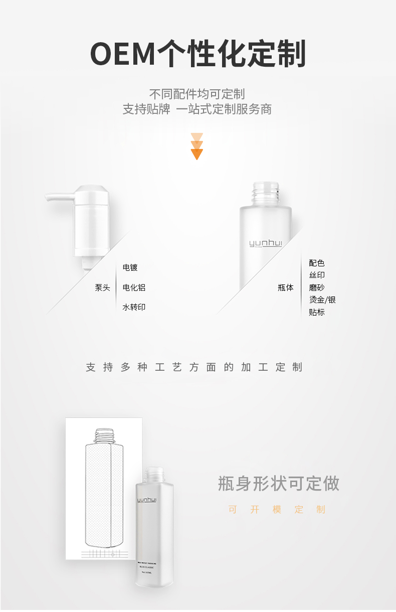专业生产高端化妆品包装瓶、洗护用品包装瓶、日化品包装瓶、护肤品包装瓶的厂家